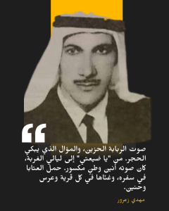 Mahdi Zaarour: The Voice of Nostalgia Mahdi Zaarour (1940s–2016) was a renowned singer-poet from the village of Harbata in Baalbek District. Known for his soulful voice and masterful rababa playing, Zaarour was a powerful figure in the tradition of Lebanese-Bedouin fusion. His signature mawwal “Ya Day‘ati” (“O My Village”) speaks to a deep nostalgia for rural life, and his improvisations in ‘ataba often touched on themes of migration, love, and longing.