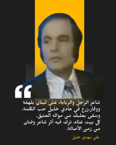 Mahdi Khalil’s lyrics often celebrated Baalbek’s pride, struggle, and traditions. His influence extended far beyond his village, as his poetic style helped shape the modern Lebanese folk music scene. His passing in the 1990s marked the end of an era, but his spirit endures in the verses he left behind.