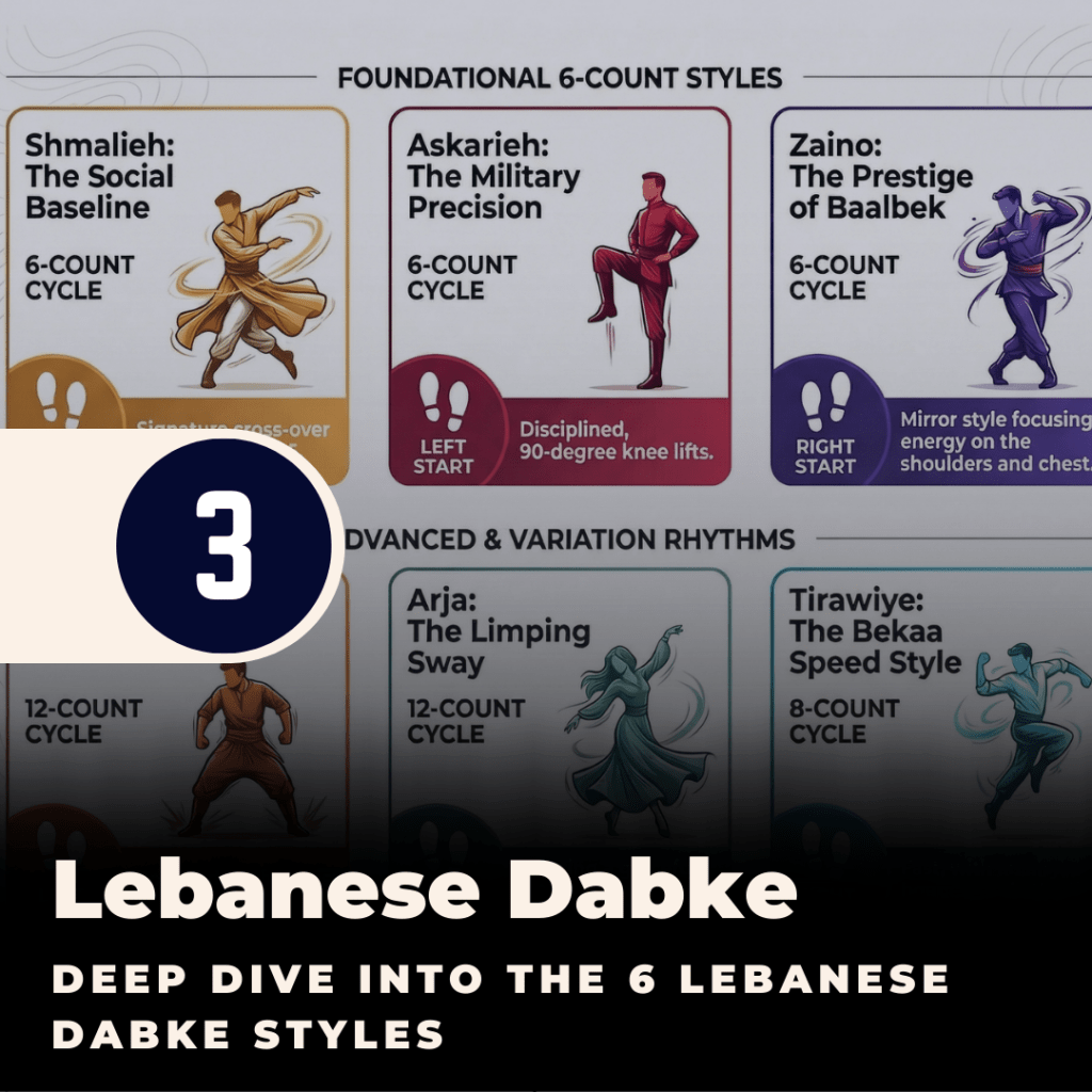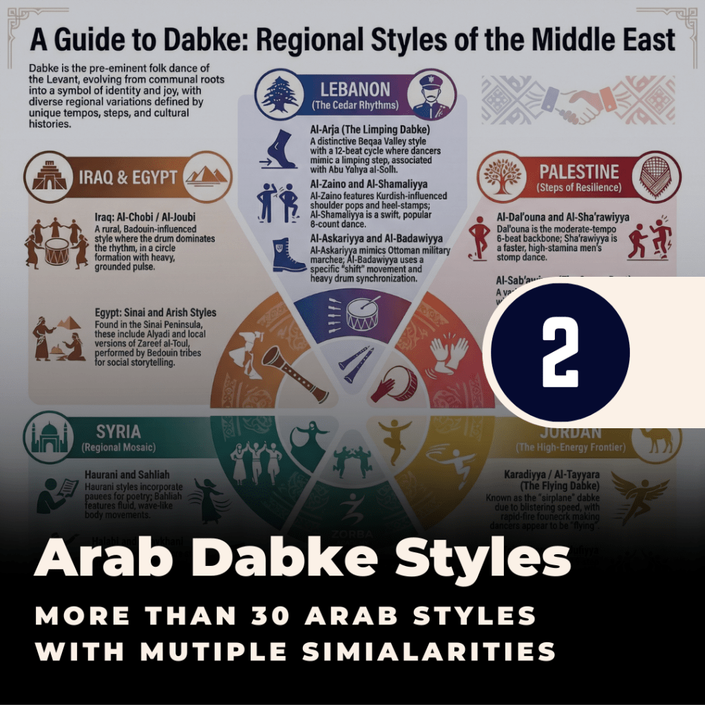 At Zorba Academy, we organize Lebanese Dabke into six core authentic styles: