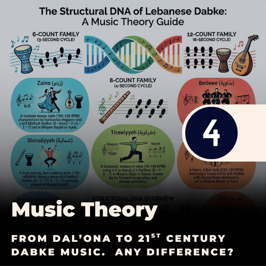 In our theory course, we break Dabke into three structural families — what we call the DNA of Lebanese Dabke.